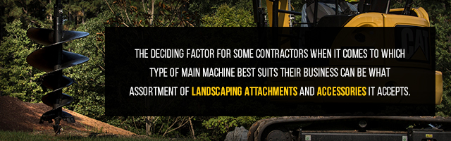 The deciding factor for some contractors when it comes to which type of main machine best suits their business can be what assortment of landscaping attachments and accessories it accepts.