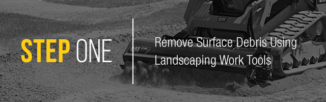 Step 1: Remove Surface Debris Using Landscaping Work Tools