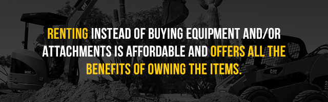 Reduced costs compared to equipment purchases. Equipment and attachment rentals are often more cost-effective, especially if the hardware is only for one project, in comparison to purchasing or financing equipment over a set number of years.
